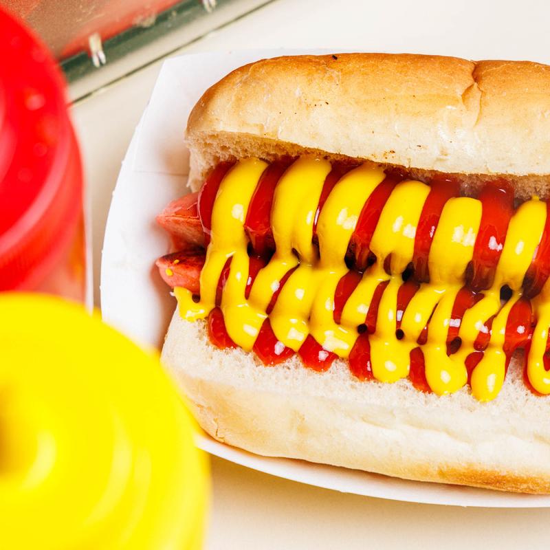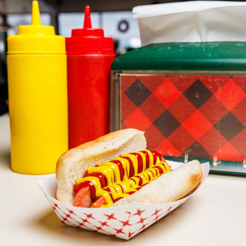 Choose 2 sides: home fries, french fries, macaroni salad or baked beans | Add: Mustard, onions, hot sauce